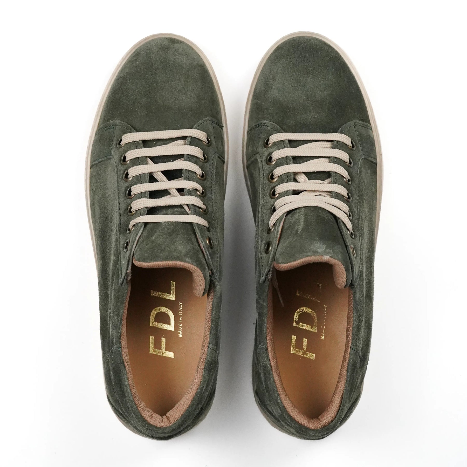 Sneakers Berlino di FDL in Vero Camoscio Verde con fondo ambra trasparente in gomma cucito ed ultraleggero. Le nostre sneakers sono il risultato di una combinazione perfetta tra artigianato italiano di alta qualità e design contemporaneo.