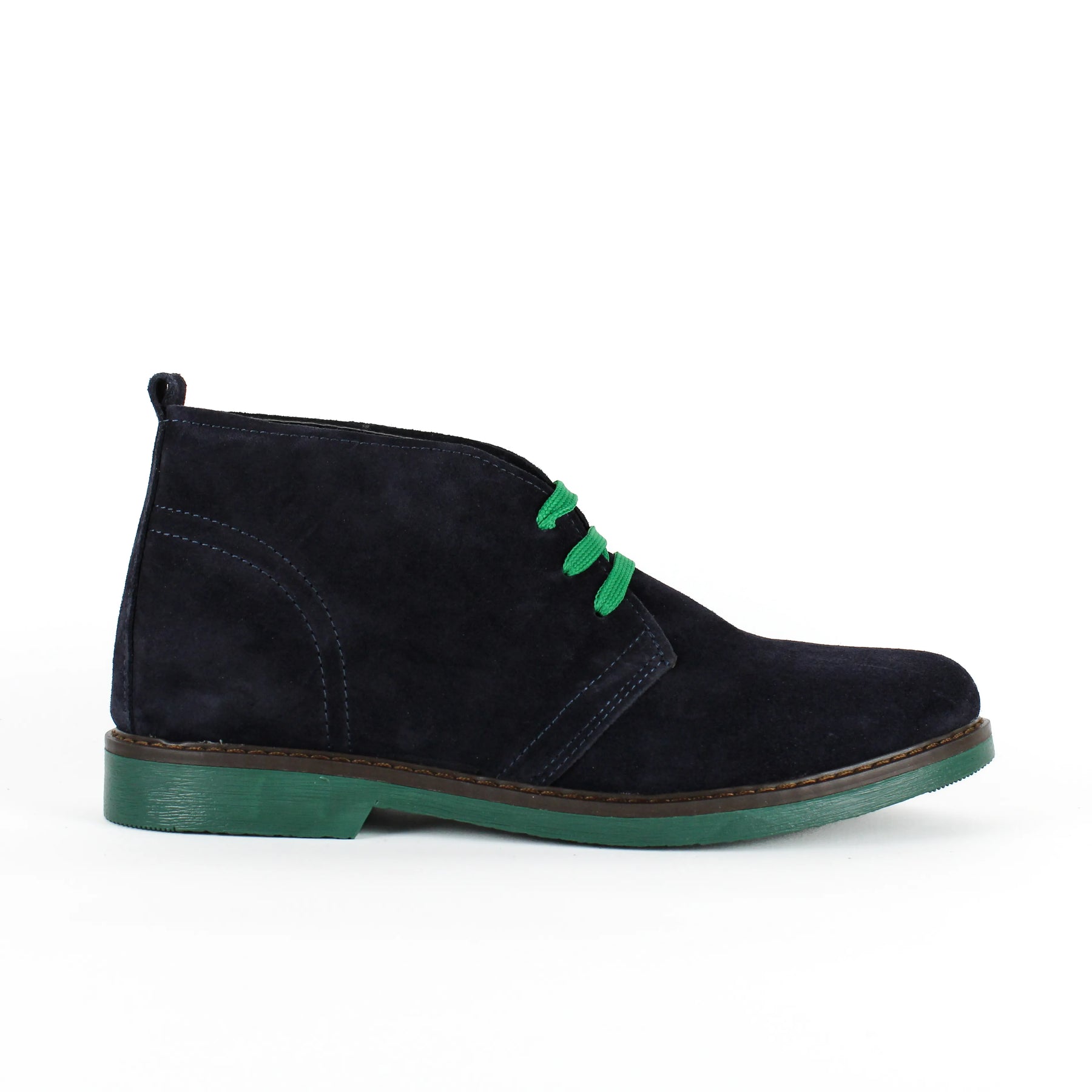 Polacchine Flavio in Camoscio Blu con fondo in gomma ultraleggera color verde scuro. Le nostre polacchine sono il risultato di una combinazione perfetta tra artigianato italiano di alta qualità e design contemporaneo.